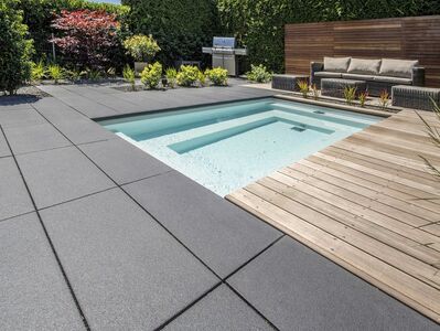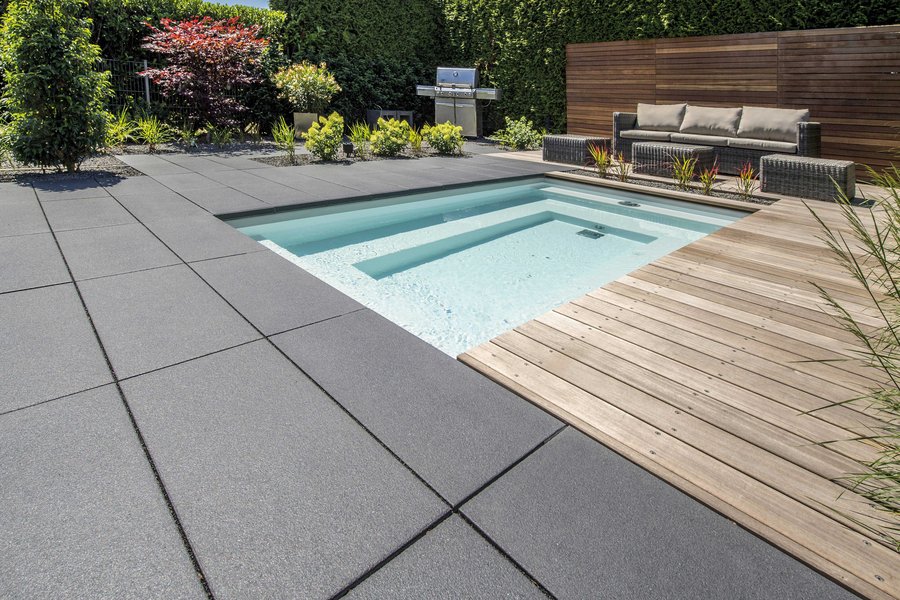 Terrassenplatten mit strukturierter, feinkugelgestrahlter Oberfläche