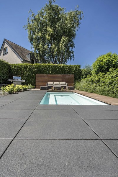 Die strukturierte, feinkugelgestrahlte Oberfläche von Latina, die in drei unterschiedlichen Farbnuancen erhältlich ist, garantiert nicht nur eine gute Begehbarkeit, sie verleiht den Latina Terrassenplatten auch eine ganz eigene Ästhetik. Mit dem CleanTop-Oberflächenschutz hat Latina darüberhinaus hervorragende Renigungseigenschaften.
