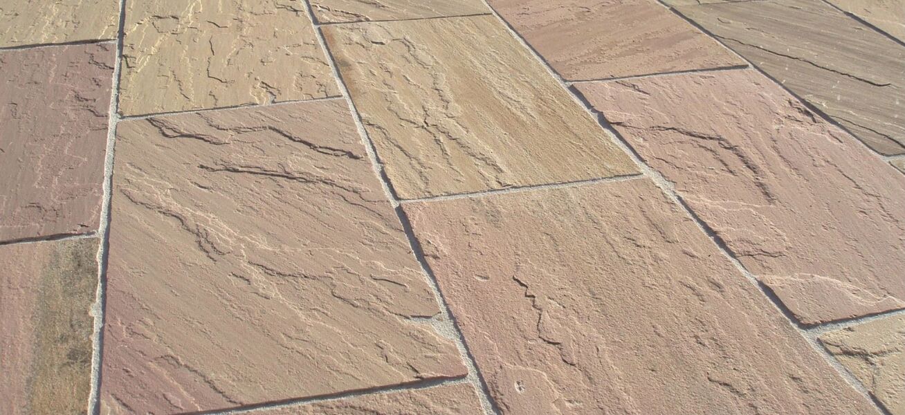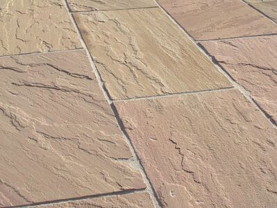 Sandstein BodenplatteHerkunft IndienOberfläche bruchrohhandbekantet2,5 - 4cm stark