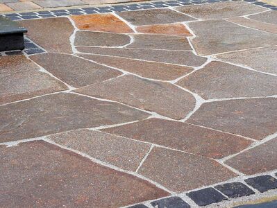 Porphyr BodenplatteOberfläche bruchroh, Mosaikplatten2-5 cm stark