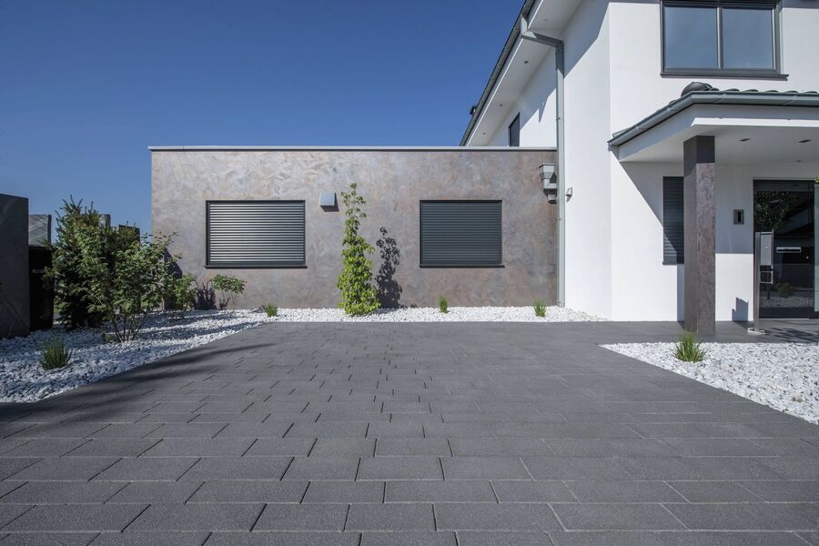 Das feinkugelgestrahlte Pflastersystem mit Verschiebesicherung, ohne Fase
