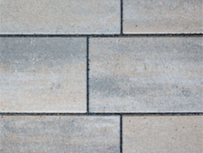 Elegantes Pflastersteinsystem mit drei Formaten in einer Lage. Wasserdurchlässig über die Fuge. Moderne, längschangierende Oberflächen und Farben.