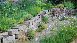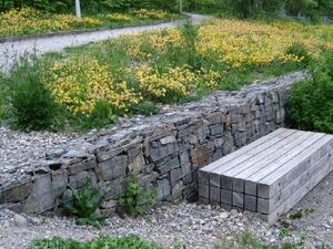 Reich an Rückzugsräumen ist auch die Trockenmauer, bei der Natursteine ohne Mörtel aufeinandergeschichtet werden. Einen Teil der Fugen kann man mit Kräutern wie Thymian sowie mit Polsterstauden wie Grasnelke und Schleifenblume bepflanzen. Gut lässt sich eine solche Mauer mit einem Kiesbeet kombinieren, in dem trockenheitsliebende Stauden und Halbsträucher gedeihen. Königskerze, Blauraute, Nachtkerze und Schafgarbe fühlen sich an solchen Standorten wohl. Schön ist es außerdem, in die Kiesfläche einen kleinen Sitzplatz zu integrieren, auf dem man dann die Hummeln beobachten kann, wenn sie dort die Blüten anfliegen.